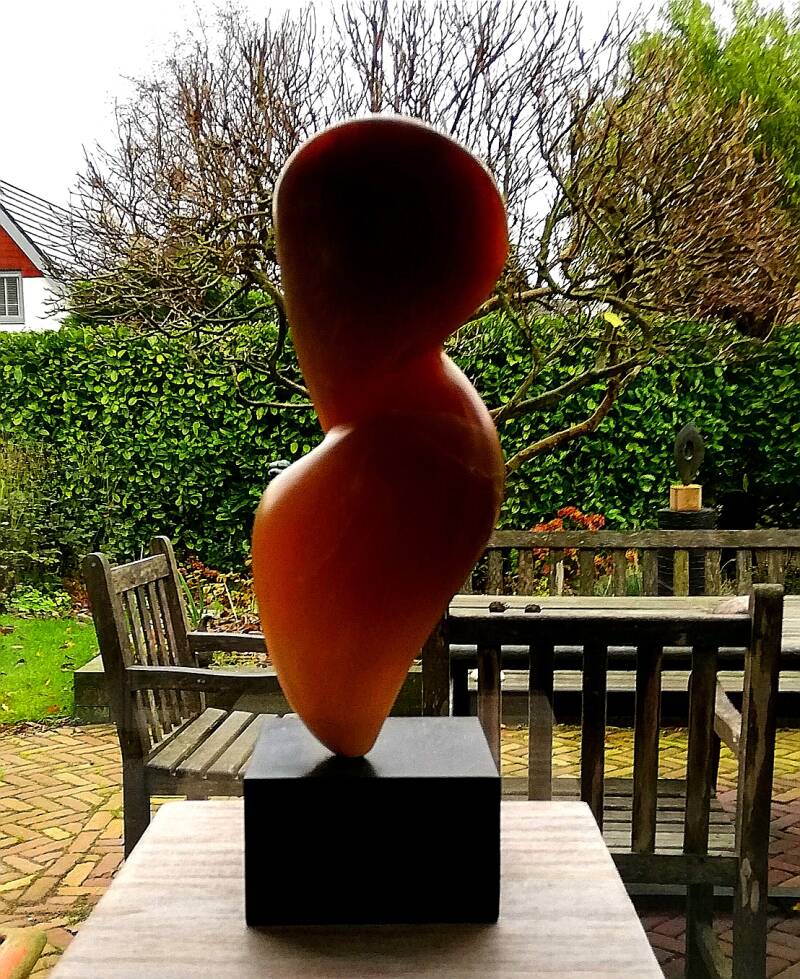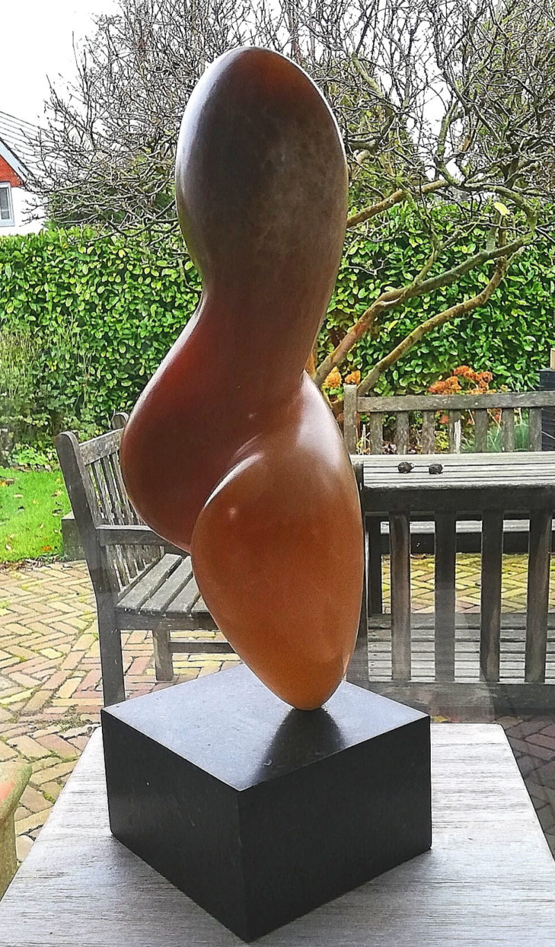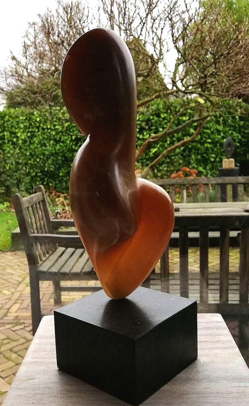 Van de kinderen kreeg ik voor mijn verjaardag een stuk ruwe albast. Zonder enig plan ben ik met de bewerking van de steen begonnen. Er kwam een prachtige zachte caramel kleur tevoorschijn dat resulteerde in bijgaand beeld.