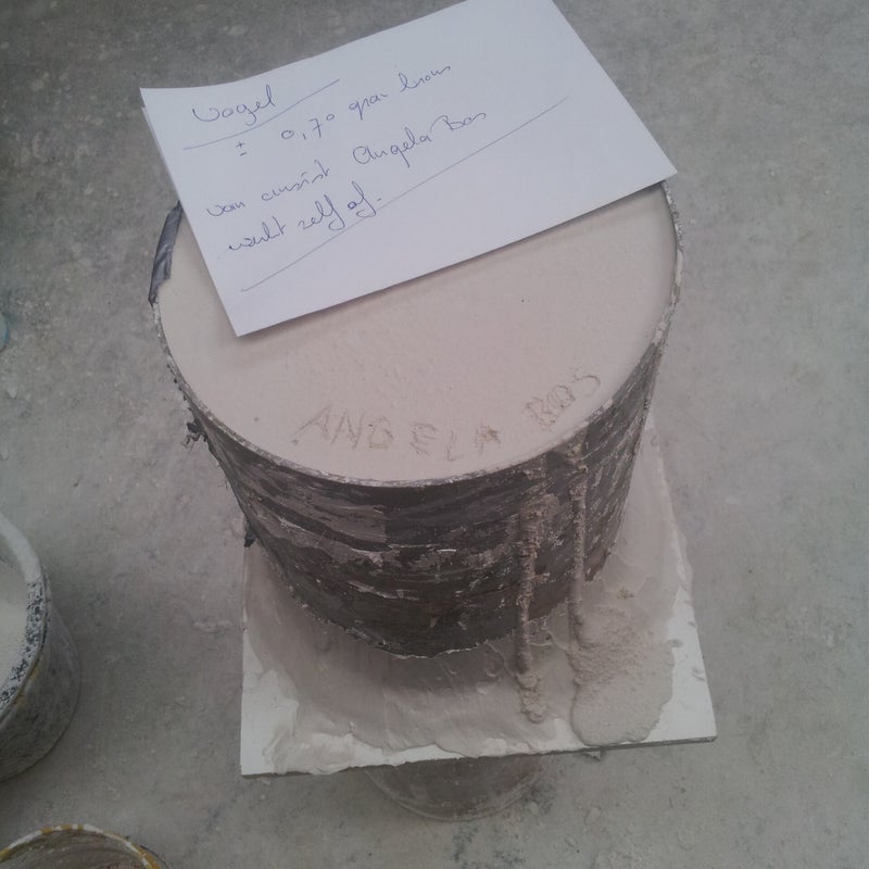 Onderstaand de foto's van een aantal fasen die doorlopen werden. Door het maken van een mal was het mogelijk om meerdere afgietsels te maken van het beeld.