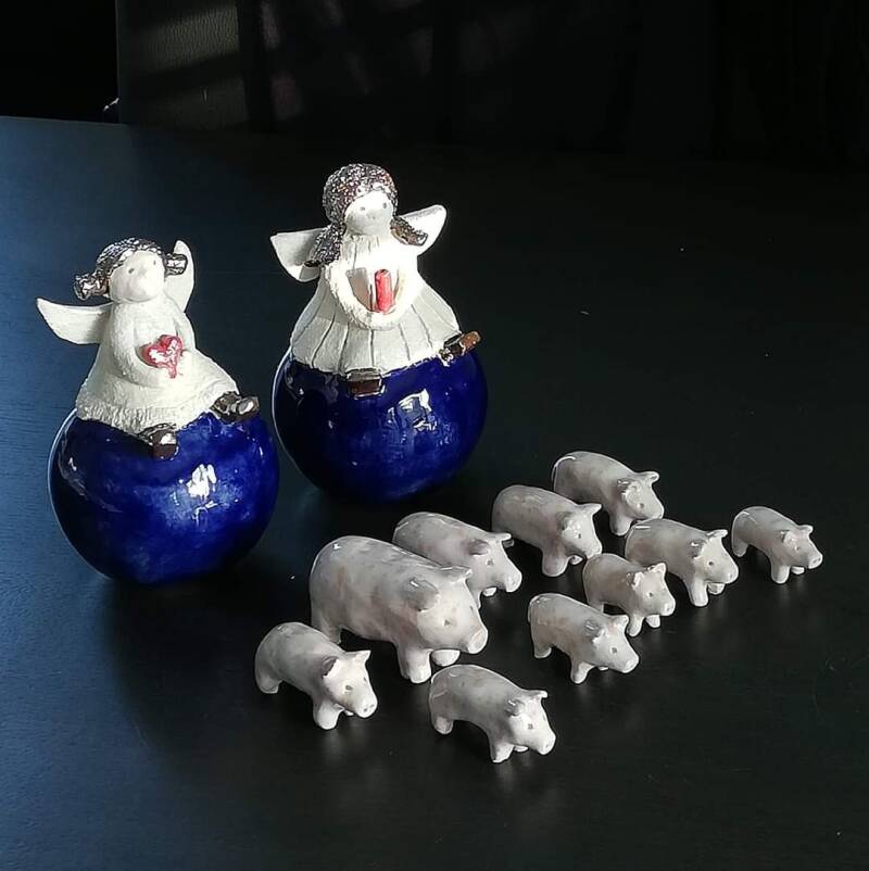 En dit is natuurlijk kleine zus. Gemaakt van witbakkende klei en slechts 20 cm groot.