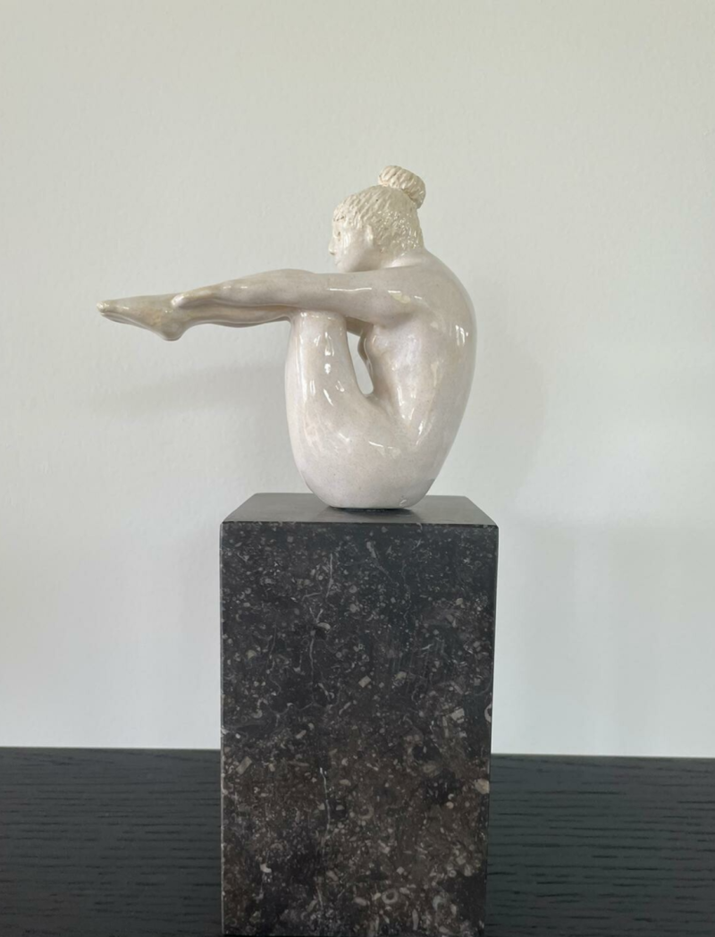Met witbakkende klei heb ik naar aanleiding van het voorbeeld dit beeld gemaakt. Dagdromen!