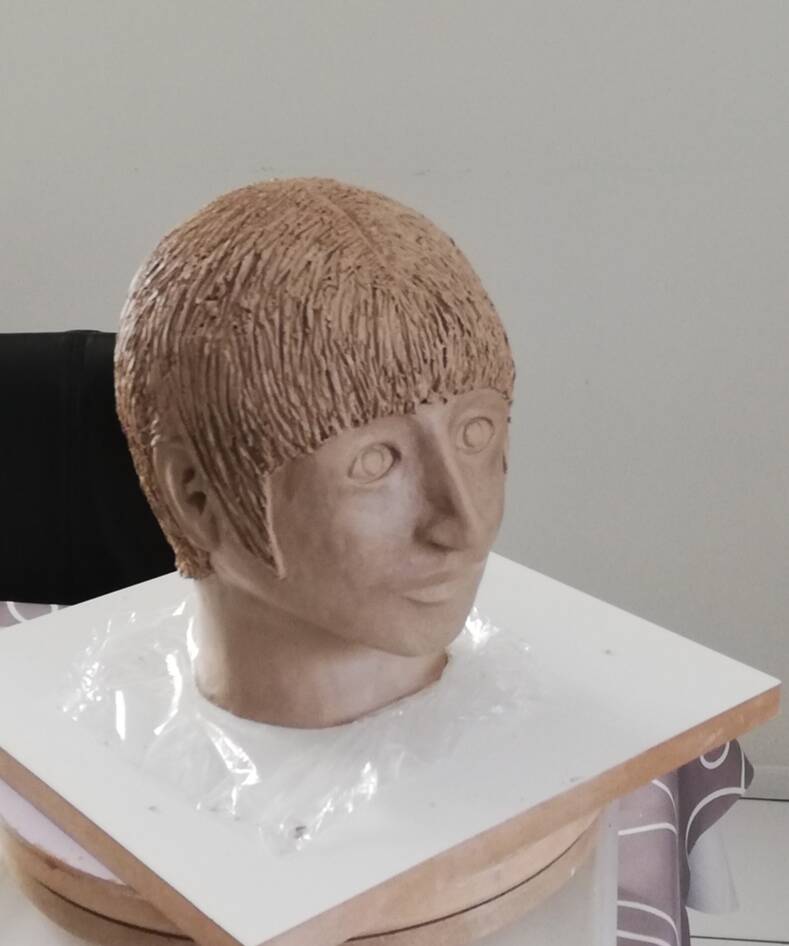 Eindelijk weer een kop gemaakt. Vooral het vormgeven van de ogen, oren en mond is een uitdaging.