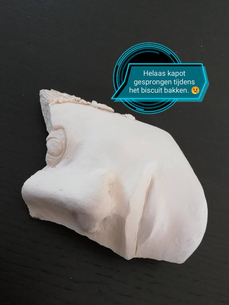 Helaas is het misgegaan bij het biscuit bakken. Blijkbaar zat er toch nog lucht tussen de klei.