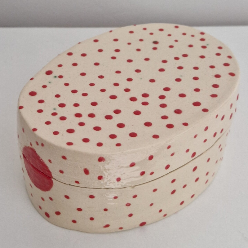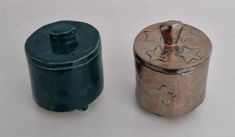 Het maken van potjes en doosjes is heel erg leuk om te doen. Binnen onze werkgroep had een van de leden wat voorbeelden meegenomen. De kunst is om te zorgen dat de deksel wel op het potje/doosje past. Daar zijn allerlei handigheidjes voor, maar ook dat het nog steeds past na het glazuren, want potje/doosje en deksel worden apart geglazuurd en gebakken.